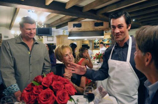 UPDATE, 8/14/12: A reader who requested anonymity passes along this, from a Cole Hamels charity cooking event. It’s not the event itself or even the apron that makes this embarrassing, I think, but Hamels’ expression combined with the apron, plus the leery look on the beefy dude’s face that implies whatever Hamels is saying is without question embarrassing: