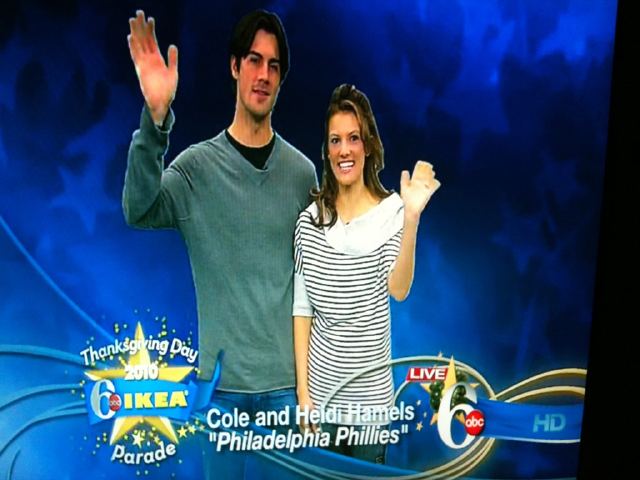 3. Love how the picture from the Thanksgiving Parade indicates in no way that it is Thanksgiving or a parade. Just that Hamels and his wife like to stand around and wave like idiots.