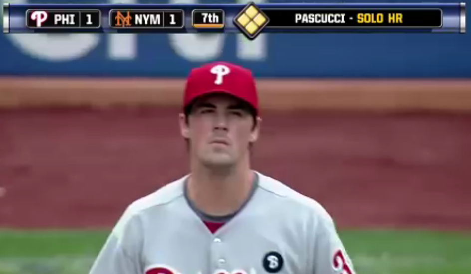 UPDATE, 9/26/11: TedQuarters hero Valentino Pascucci crushed a game-tying pinch-hit home run off Hamels in the seventh inning of the first game of the Mets and Phillies double-header on Saturday, 9/24. This isn’t the most embarrassing photo of Cole Hamels but there’s just no way I’m leaving it unarchived. Hat tip to Catsmeat for the grab: