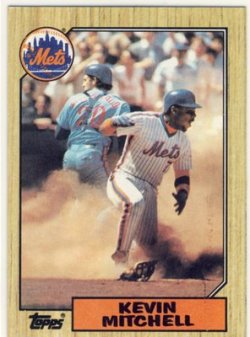 I have no idea what a Kevin Mitchell 1987 Topps rookie card is supposedly worth. I do know that it’s one of the most awesome cards in history — featuring Mitchell crossing home plate in a cloud of dust — and that when Mitchell’s career took off in 1989, my brother and I spent hours plumbing the depths of our collection to pick out every single one had — and we must have had 30, no joke — and put them in our binder of valuable cards, right next to the Pete Incaviglia and Mike Greenwell rookies from the same year.
