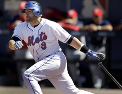 That was pretty much the highlight of the Mets’ 6-5 win over Washington. Oliver Perez walked the first batter he faced, then threw mostly strikes. Sadly, he was punished for it, allowing seven hits and five runs over three innings, but the good news is none of them actually count. And Ollie was hitting the low 90s on SNY’s gun, a good sign so early in the Spring considering the way he struggled to hit even those speeds before he was shut down last season.