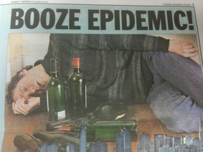 But I couldn’t help but feel some sympathy for the fellow whose picture accompanied the print edition of the Daily News’ feature on New York’s “BOOZE EPIDEMIC!” today.