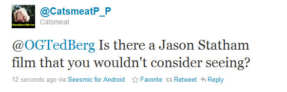 No, not unless Jason Statham’s career takes a big left turn somewhere. I saw The Mechanic the other day. It wasn’t his best. I feel like — and this I honestly believe, I’m not just saying it because he’s an awesome ass-kicking machine — Statham is better than a lot of his movies at this point. The writing in The Mechanic was so awful, predictable and wooden that it almost felt like Statham was being sarcastic half the time. And while some of the sequences were reasonably awesome, there was never that edge-of-your-seat celebration of motion and explosion and the human capacity to process rapid-fire images that I’ve come to associate with great contemporary action movies, so the whole thing was a bit of a letdown.