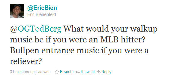 I’ve actually tackled this before. The caveat is that I’d have to be an awesome hitter and/or reliever, or else the songs don’t sound nearly as cool. But my walk-up music would be the section starting at the 1:25 mark in Ozomatli’s Super Bowl Sundae, and my closer music would be Dr. Dre’s Keep Their Heads Ringin (lyrics NSFW), though I’d obviously have to use a radio edit. But I will say I also think the Ave Maria would be a particularly badass choice for a completely dominant fireball closer, because I think it’d be completely terrifying to hear such a beautiful song being pumped through the stadium P.A. while a guy threw 98-mph warmup tosses, sounding the death knell for your chances of winning.