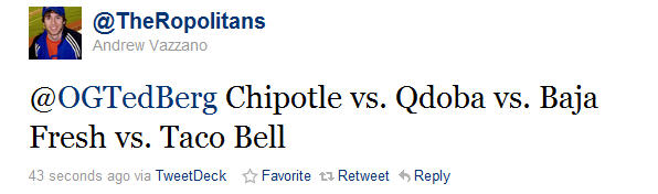 People ask me some form of this question a lot. Usually it’s just Chipotle vs. Taco Bell. Here’s my thing: Do I have to pick one?