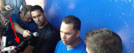 Not sure where Cerrone got this photograph for MetsBlog, but that’s my hand and our microphone indicated by the red arrow: