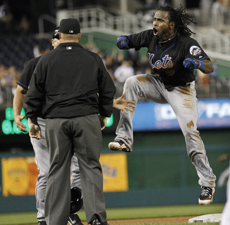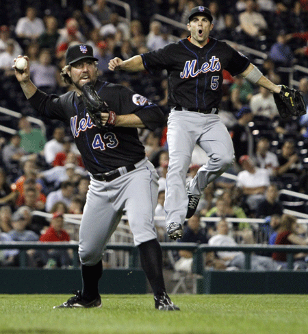 Here are photos of airborne Mets in last night’s game, courtesy of the Associated Press: