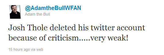 Now you might expect Twitter would take Thole’s departure as a cue for some quiet introspection, a moment to look in the mirror and consider the perpetual 140-character negativity. You’d be wrong though: