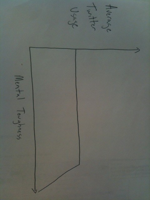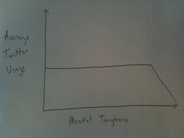 But inquisitive journalist and social-media guru that I am, I endeavored some very scientific research on the matter. I surveyed a significant sample of humanity on its Twitter habits as well as a litany of things that indicate mental toughness. Check out this graph: