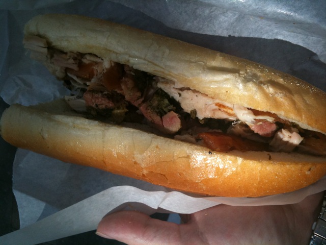 What it’s worth: You pay for the meat by the pound and the bread is separate, even though they construct it for you. All told, the sandwich was something like $7.16.