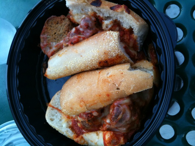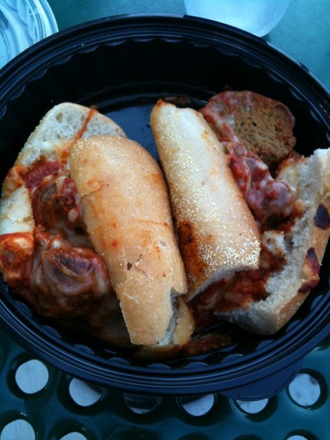 The meatball hero is available at the Cascarino’s Pizza locations throughout Citi Field. I got mine at the one in straightaway center near Beer Island or whatever it’s called. Cascarino’s makes excellent pizza, but I rarely get pizza at the park because it seems like the difference in price between pizza in the stadium and pizza outside the stadium is proportionately higher than it is with other foods.