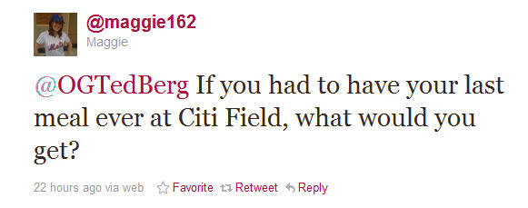Are we talking my last meal ever all told and I’m eating it at Citi Field, or my last meal ever at Citi Field? Stupid 140-character limits make it difficult to specify, I know.