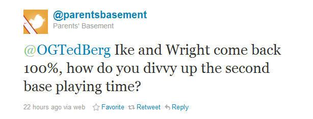 A few people have asked me this and I keep answering the same thing: No reason to pick between Daniel Murphy, Justin Turner and Ruben Tejada yet. Since Ike Davis and David Wright look like they’ll be out until at least the All-Star Break, there will be plenty of at-bats for all three potential second basemen before the team needs to make any decision. Obviously teams should work with the most evidence possible, and since all three — and especially Turner and Tejada — are still dealing in small samples, there’s no rush to name a favorite.