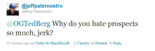 I don’t hate prospects; I really don’t. (Jeff’s kidding when he calls me a jerk, btw. At least I hope he is.) In fact I am en route to Binghamton to talk to prospects as we speak.