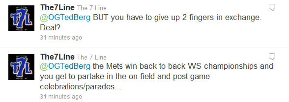 Either way I think the answer is no. Maybe that means I’m not committed enough, but I’d say it’s just optimism. I’m confident enough that the Mets will eventually win a World Series or two that I’m not willing to part ways with my fingers to guarantee it.
