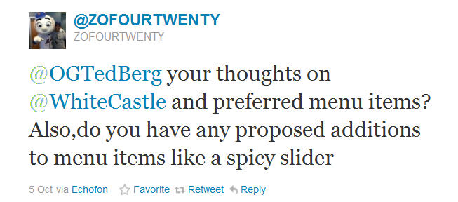 Worth noting: My father loves White Castle. Just f@#$ing loves it. He grew up near one and had to walk past it on his way home from high school, and I guess he developed a pretty strong dependence. He doesn’t get to go as often as he’d like, I think, because my mom doesn’t care for it and it’s a bit out of the way for him now.