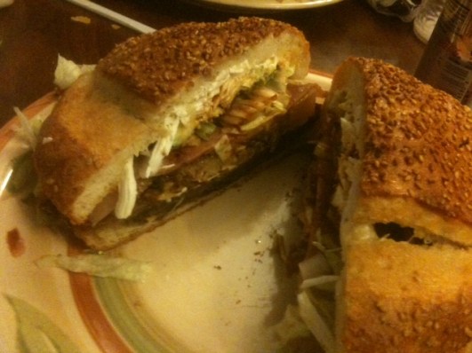 Important background information: I was really hungry. Sometimes I worry that my sandwich ratings are hugely impacted by how hungry I am when I eat the sandwich. And in this case, it was about 8 p.m. and I hadn’t eaten anything substantial since an undersized cold-cut sandwich for lunch around 11:30, so I was hungry enough to be frustrated at having to tie my shoes before leaving the apartment. Stuff like that.
