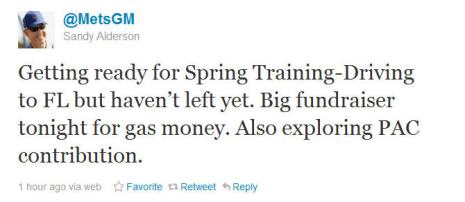 According to multiple beat writers, Sandy Alderson joined Twitter today, tweeting as @MetsGM. Here is his first Tweet: