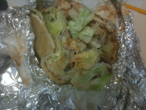 Considering the price it might be asking too much, but I think to put this thing into the realm of the sublime they could lay down the chicken, then hit it with white sauce, then the lamb, then more white sauce, then the lettuce. No meat left unsauced. And then if you lose some lettuce, BFD.