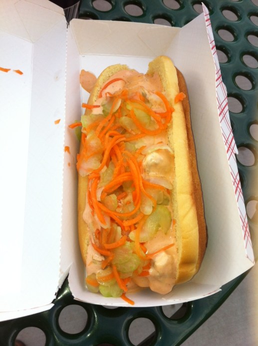 I really can’t say enough about the concept here: It’s football flavor on a ballpark-friendly (and baseball-appropriate) delivery method. And it’s delicious. The sauce is spicy and flavorful enough that you never forget you’re eating something Buffalo-flavored, but it doesn’t overpower the hot dog itself. And the bun — a potato bun — is sweet, and the pickled vegetables have a nice acidity to them, plus crunch. All the stuff you need.