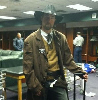 The Mets took their Western road trip to heart and wore costumes to match the occasion. Amazin’ Avenue and ESPN New York have photos. Daniel Murphy is the least convincing cowboy, which makes sense because I imagine if someone in 1850 were like, “Hey, Old West Murph, come help me rassle some steers,” he’d be all, “not now bro, got to get my cuts in first.” And everyone would wonder what the hell he was talking about, at least until a barnstorming base ball club moseyed on into town and Old West Murph promptly hit .320 against them.