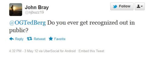 If you’re reading this and you do happen to see me out in public, by the way, please say what’s up. The ensuing conversation will probably be kind of awkward, but it makes me feel super awesome and cool. Also — and I’m hoping if I bury it in a Q&A post he won’t see this — if you ever see Matt Cerrone and I in a bar and you come up to me all like, “TED BERG! YES! I LOVE TEDQUARTERS SO MUCH!” and act like you have no idea who Cerrone is, I’ll buy you a beer. The opposite thing happens all the time, though I suspect there’s no acting involved.