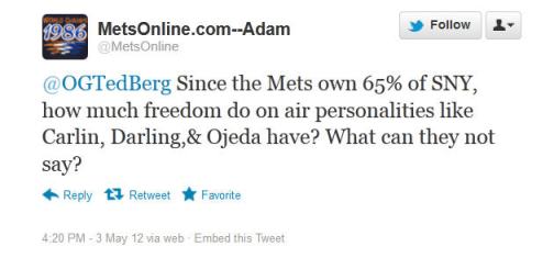 I can’t speak for any of those guys and I won’t try to, but I can say that a) the once-endless SNY/Wilpon/Mets conspiracy theories are one of the more frustrating aspects of my job (not that Adam’s suggesting any of them here) and b) no one has ever told me what to write or what not to write. The only time I’ve ever heard from anyone at the Mets was when I misstated the terms of Cory Sullivan’s contract in a column criticizing the Mets for giving guaranteed Major League money to people like Cory Sullivan, when, in fact, Sullivan had a split contract.
