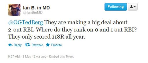 It does seem weird for a team to score 56.8 percent of its runs with two outs, as the Mets have to date in 2012, but since it doesn’t appear the Mets are doing anything appreciably different with two outs than they are with one out or no outs, I’d guess it’s just a heaping helping of early-season randomness. And part of it certainly has to do with how bad they’ve been with one out — hitting to a .618 OPS, well below their .707 team rate. That’ll even out, and when it does, the two-out stats won’t seem so extraordinary.