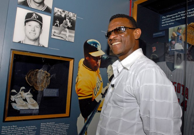 In lieu of anything else to write about, I went to the AP wire to find a photo of Rickey Henderson to post. Problem is, there are way too many to choose just one. Here are some photos of Rickey Henderson doing stuff.