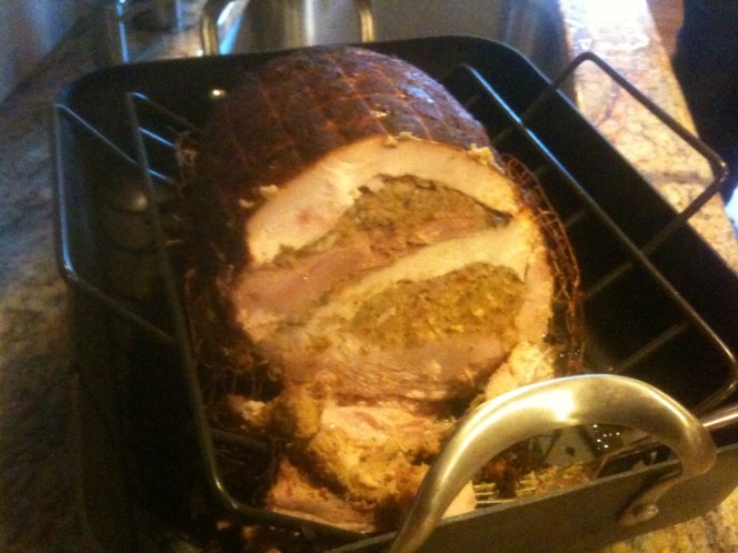 Here’s what the turducken looked like. I believe this is technically a boneless turducken or turducken roll. It’s tremendous: