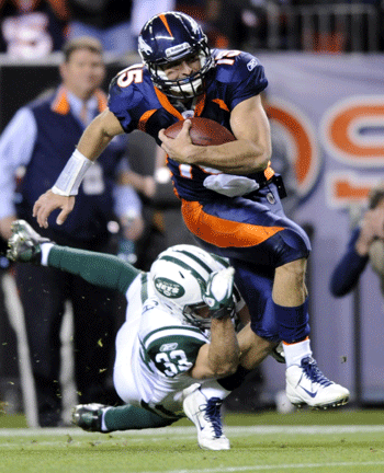 To the Jets’ credit, they were playing on three days’ rest at Mile High altitude — a fact that will get overlooked in discussions of the way the Gang Green defense folded up on the Broncos’ final drive after dominating most of the game, while pundits instead euphemize the various ways they’d like to shotgun Tim Tebow’s magical wishbone.