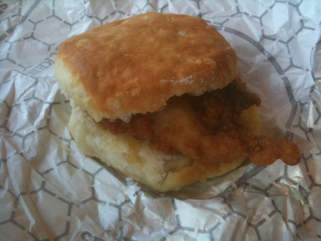 The candidate: The Chicken Biscuit from Chick-Fil-A, which counts as breakfast at Chick-Fil-A.