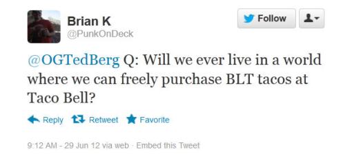 Here we go. Apparently the Twitter/Wordpress thing is going to embed my one Tweet with all the responses: