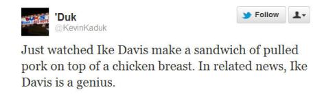 Davis went through his scheduled Spring Training routine today: stretching, then infield, then batting practice, then four innings of the Mets’ intrasquad game. About five hours of baseball activity in the Florida heat, plus whatever cage work and weightlifting he might have done before and after. Then he talked to me about Daniel Murphy’s defense and sandwiches for a few minutes. He seemed tired, but no more than I was and not at all sick.
