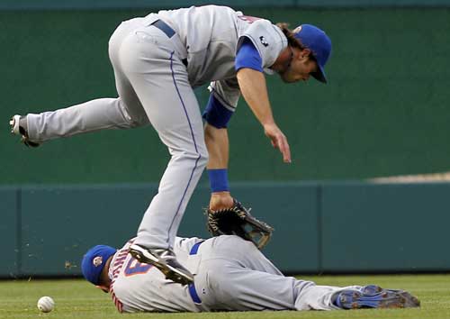 – The injuries definitely caught up with the Mets last night, most notably in the short-handed bullpen. I suspect Jon Rauch would be on the disabled list already if the Mets had an obvious answer on the 40-man roster to call up in his stead. They don’t. The only healthy, eligible pitchers on the 40-man are Jeurys Familia, who has walked 6.4 batters per nine innings in Triple-A this year, Jenrry Mejia, who started on Monday, and Robert Carson, who has been hit hard every time he’s been called on in a Major League game this season. Pedro Beato is eligible to come off the 60-day DL, but the Mets will have to take someone off the 40-man to get him back and he pitched two innings Monday. With Jason Bay expected to come off the disabled list today, there’ll likely be some roster shuffling.